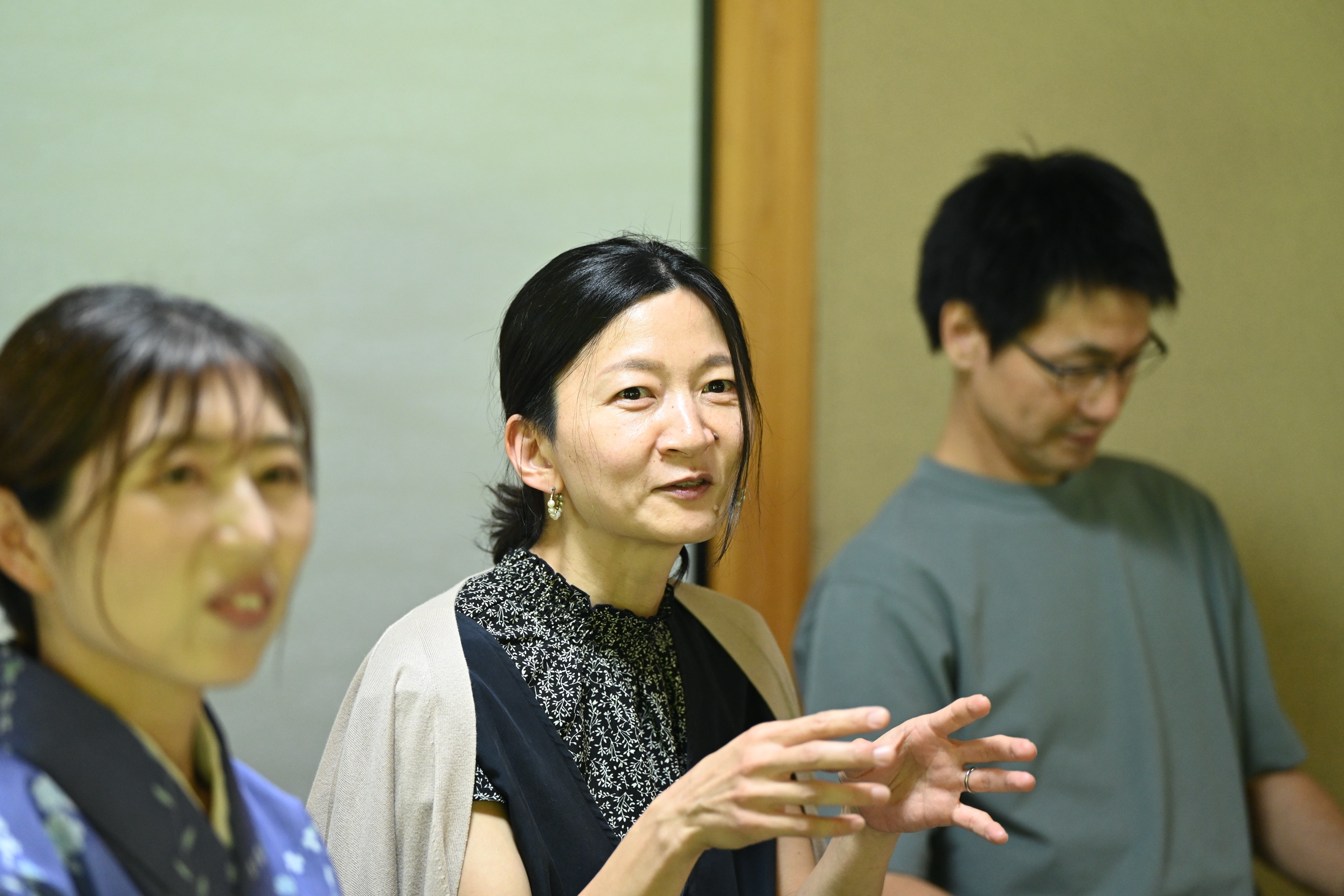 本ディスカッションは、和やかな雰囲気の中で始まりました。最初の話題は、「一生ひとつの食べ物しか食べられないとしたら、何を選ぶか?」という問いでした。参加者たちはそれぞれの選択と、その理由にまつわる個人的な体験を語り合いました。チャーハン、蕎麦、鍋、野菜スープ、おにぎり、味噌汁など、どの答えにもその人の文化的背景や家族との思い出、体験がにじみ出ており、会場は笑いと共感に包まれました。参加者の一人は「お母さんのおにぎりがこの世で一番好き」と語り、別の人は「そばを食べることで季節を感じられる」と話しました。ある外国出身の参加者は、かつて家で飼っていたヤギがクリスマスの食卓に並んでいたというショッキングなエピソードを涙混じりに共有し、他の参加者たちも思わず聞き入っていました。