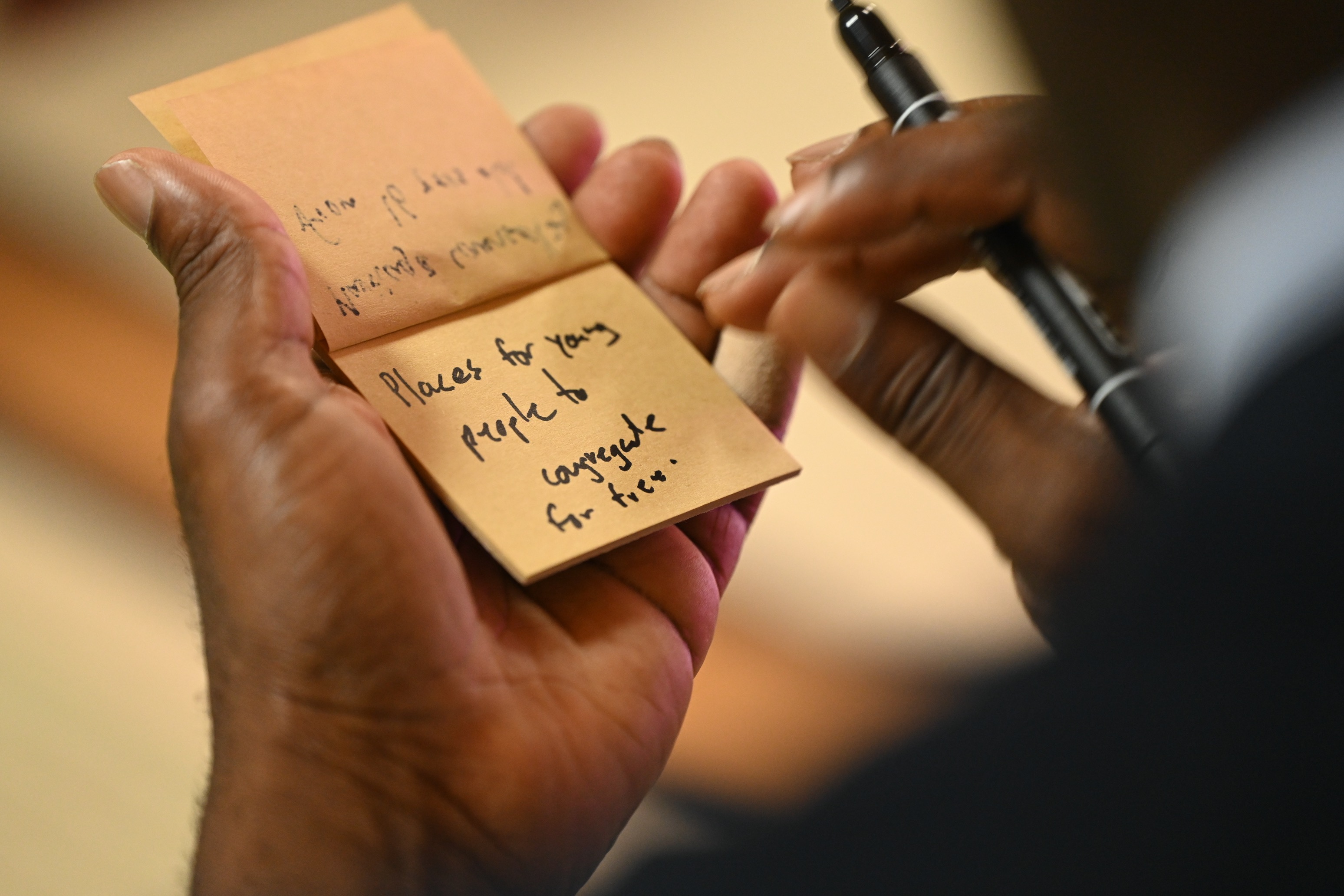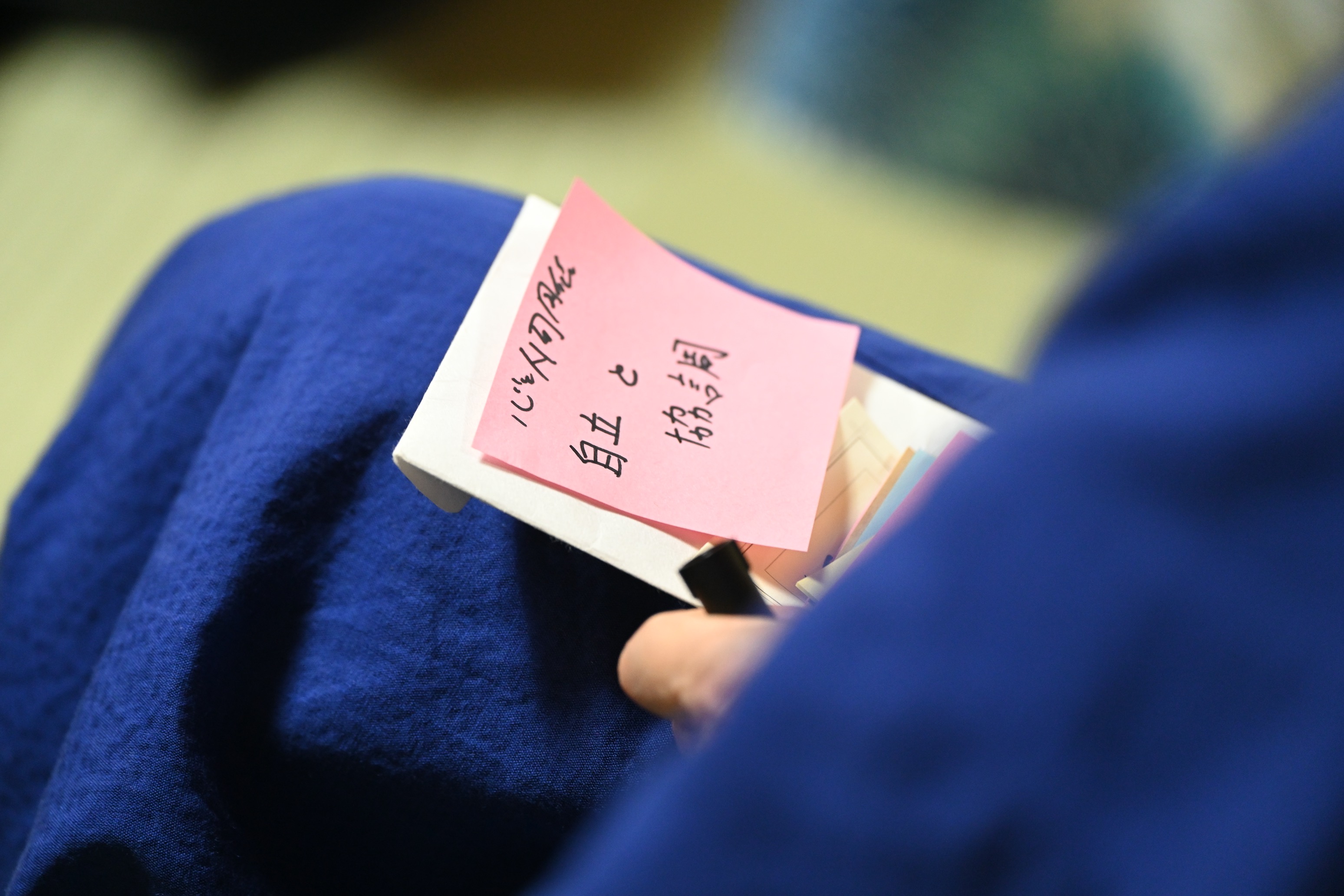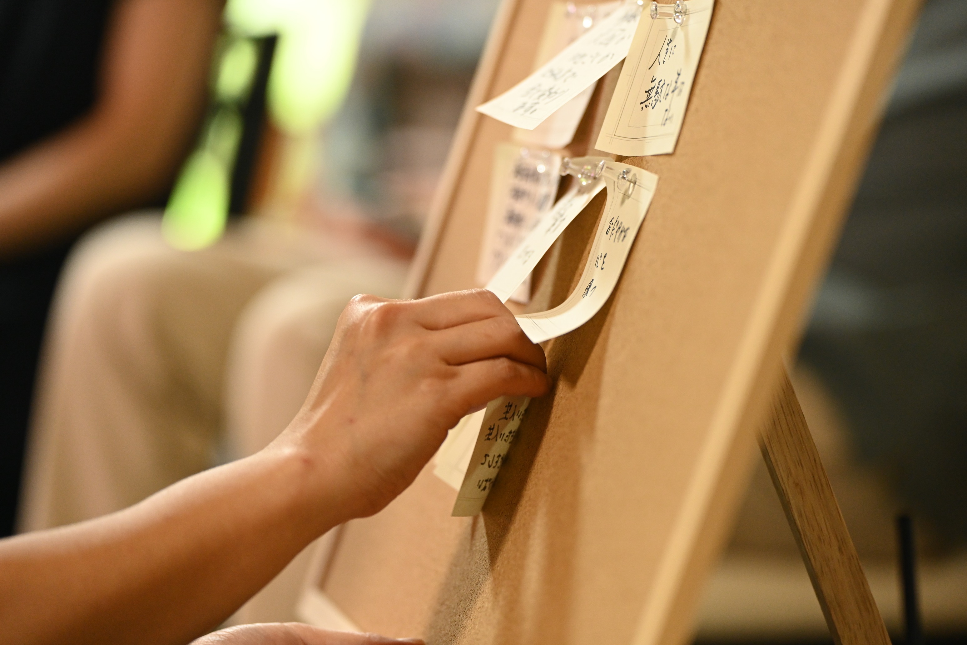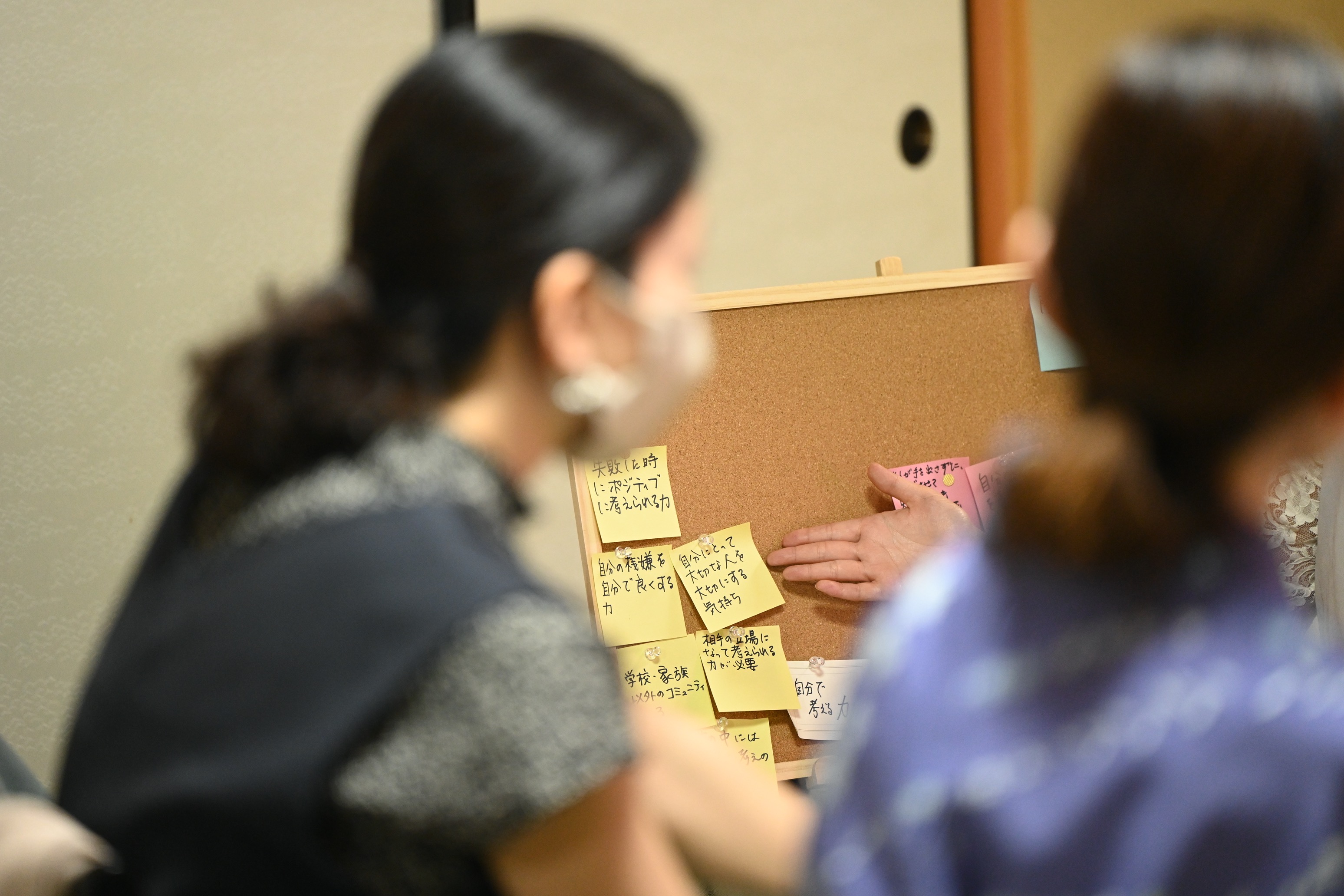 議論は時に笑いを交えながら、時に胸が締め付けられるような経験も共有されながら、終始真摯に進められました。最後には、「結婚したくなる社会をどうつくるか」という問いに対して、それぞれが自由に意見を紙に書き、壁に貼り付けていくという対話的なワークが行われました。「今や未来を楽しむ心のゆとり」「二人で働いたら一人より豊かになる」「教育に思いやりを組み込む」など、多様な視点と願いが色とりどりの紙に綴られていました。